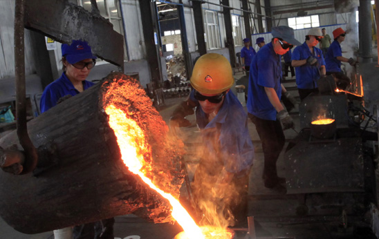 8月9日,當(dāng)天的最高氣溫34度。澤州縣巴公裝備制造工業(yè)園里,鑄造車間的工人們頂著近40度的高溫在認(rèn)真工作。 立足產(chǎn)業(yè)基礎(chǔ)和區(qū)位條件,主攻資源深加工轉(zhuǎn)化,狠抓冶鑄及裝備制造、現(xiàn)代煤化工等產(chǎn)業(yè)鏈條的培育,使?jié)芍菘h成為全市有煤縣中非煤產(chǎn)業(yè)比重最高的縣,非煤產(chǎn)業(yè)高達(dá)60%。但今年以來,由于受國內(nèi)外經(jīng)濟(jì)形勢的影響,特別是受煤炭、鋼鐵、鑄造等產(chǎn)業(yè)市場需求不旺,價(jià)格下滑的影響,澤州縣主要產(chǎn)品總體上處于“雙降”趨勢,即產(chǎn)量價(jià)格雙下降。上半年,全縣工業(yè)增加值增長6.2%,排名全市倒數(shù)第二。影響因素有四個(gè)方面:一是煤礦生產(chǎn)不正常,目前僅有天戶煤業(yè)、西成莊煤業(yè)等2家煤礦生產(chǎn),其他或處于停產(chǎn)狀態(tài),或轉(zhuǎn)入基建礦井,1-6月份影響原煤產(chǎn)量200萬噸,影響工業(yè)增加值8億元;二是晉鋼集團(tuán)由于環(huán)境趨緊硬約束停產(chǎn),6月下旬組織恢復(fù)生產(chǎn),5、6月份影響鋼鐵產(chǎn)量40萬噸,影響工業(yè)增加值3億元;三是化肥市場4月份以來持續(xù)下滑,價(jià)格下降(1700元/噸,同比下降500元/噸左右,且銷售不暢),需求萎縮,1—6月份產(chǎn)量同比有所下降;四是鑄管件市場今年以來持續(xù)需求不振,同時(shí)價(jià)格下降,產(chǎn)量下滑。